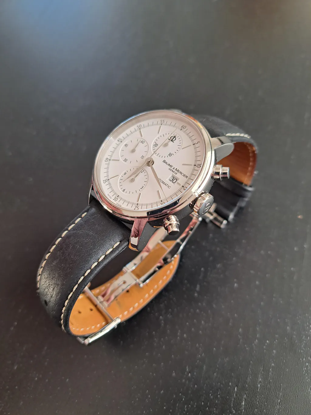 This strap is made with a soft, padded tumbled leather and is lined with a caramel Nubuck backing. The leathers are secured together with an elegant off-white stitching. This everyday strap is easy to pair with any look.