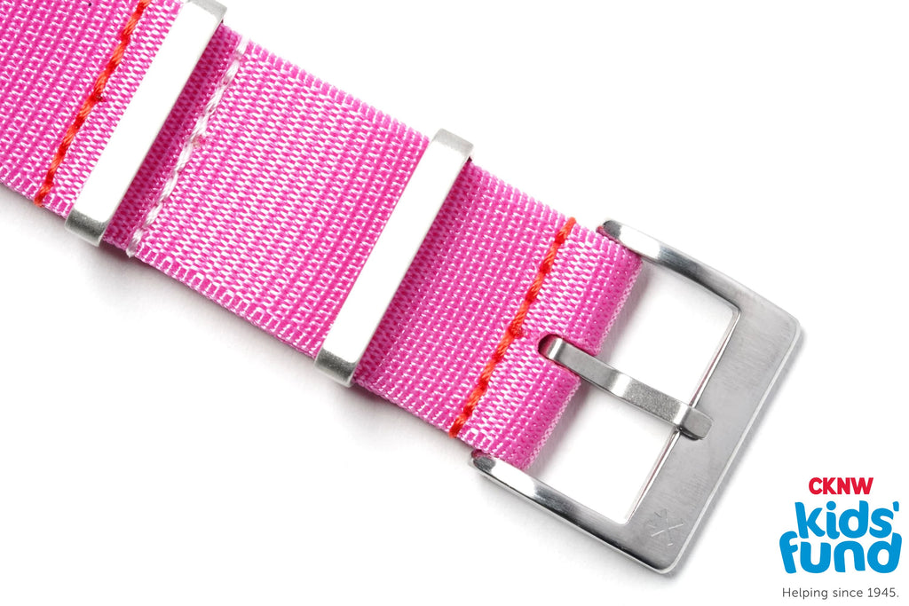 In Support of anti-bullying, Strap Mill Canada has created a Pink Loop Seatbelt Watch Strap to fundraise for CKNW Kids' Fund. Proceeds support organizations that promote children’s healthy self-esteem and positive relationships, both with their peers and themselves.