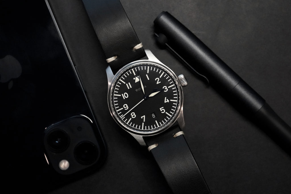 This Horween Chromexcel Vintage Leather Watch Strap is crafted from leather produced by the renowned Horween tannery in Chicago. The leather features a combination tanning process that blends vegetable and chrome tanning techniques, resulting in a rich, durable leather. The strap exhibits a distinctive pull-up effect, where the temporary displacement of oils and waxes creates a subtle lightening of the leather, enhancing its vintage character and depth over time. The underside of the strap is lined with Zermatt leather from Haas Tannery in France, offering water resistance, excellent breathability, and hypoallergenic qualities.